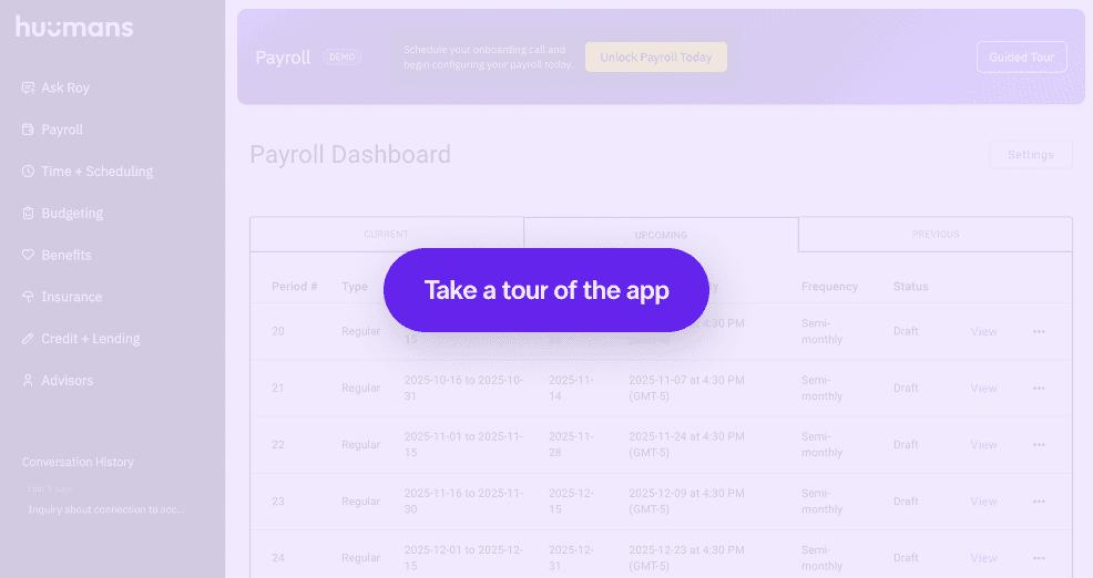 That’s why Huumans launched Payroll Relief 2025 — an initiative designed to help advisors experience this shift firsthand. It gives accountants, bookkeepers, and payroll professionals a year of free payroll for their firms and clients, along with access to the Huumans Financial Dashboard and AI-powered advisor, Roy.