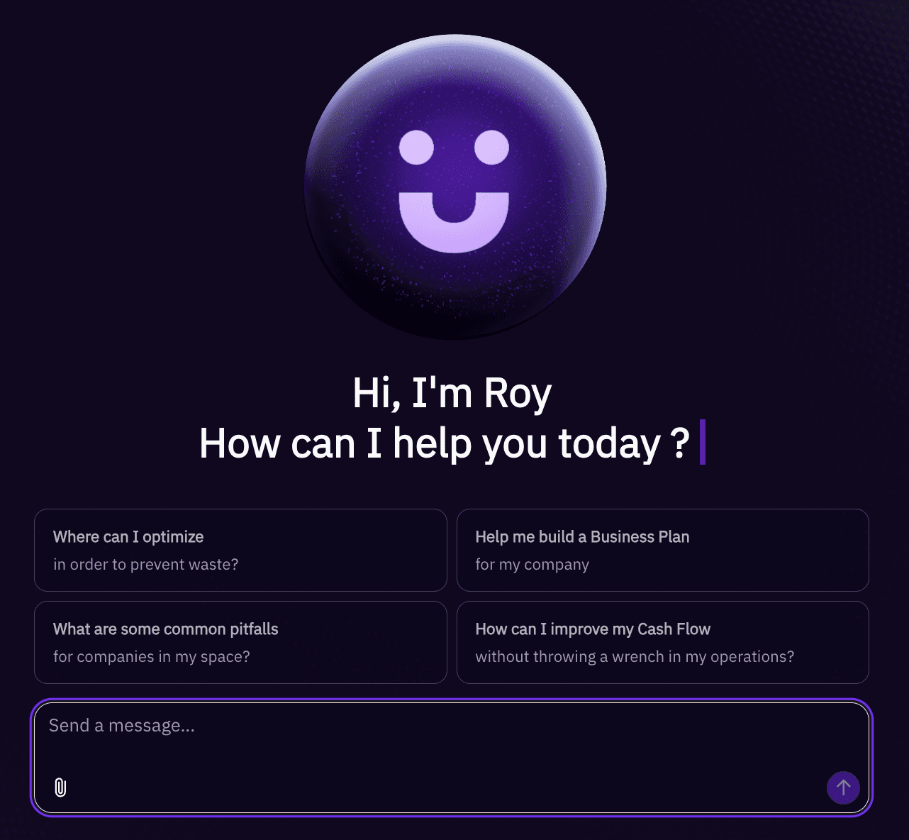 AI engines that connect data and crunch numbers often operate behind the scenes. AI agents, like Roy, Huumans AI CFO, are there inside the software to help you out. You can ask Roy anything from general knowledge questions to detailed inquiries related to your business’s financial data.